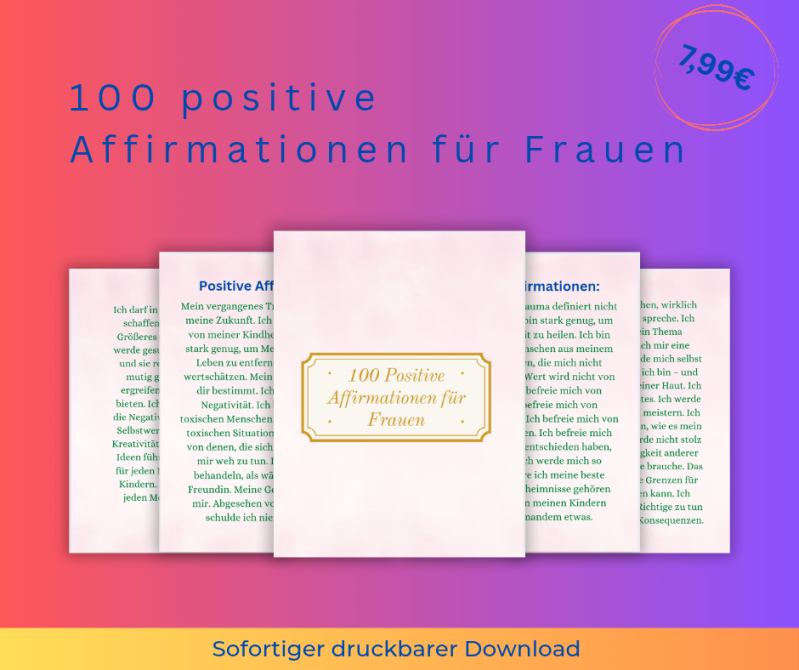 Sofort druckbarer Download (PDF) mit Affirmationen für mehr Selbstliebe, Mut und Vertrauen.